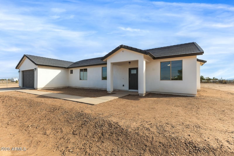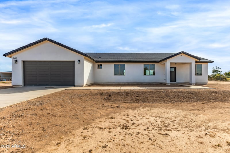 Listing details for 3662 343rd Ave, Tonopah, AZ 85354 : This beautifully designed newly build ranch-style home situated on over an acre of land, offering space, comfort, and modern elegance. Featuring 4 spacious bedrooms and 3.5 bathrooms, this home includes two primary suites perfect for multi-generational living or added guest privacy. The primary suite is a true retreat, complete with a luxurious en-suite bathroom featuring a separate soaking tub and walk-in shower.