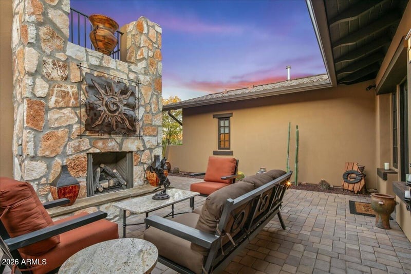 Listing details for 36639 105th Way, Scottsdale, AZ 85262 : Perfectly positioned in the heart of the Mirabel Club in Scottsdale, this El Corazon-Bright Angel model offers refined desert living in an ideal lock-and-leave design. Thoughtfully crafted with impeccable construction, these villas are known as the ''heart'' of the community - just steps from the Mirabel Clubhouse. A private front courtyard welcomes you, creating a serene entry and seamless access to the detached casita - perfect for guests, a studio, or private office. Inside, light-filled living spaces flow effortlessly to the backyard oasis featuring a negative-edge heated pool and breathtaking sunset views. The primary suite is a true retreat, complete with an additional enclosed flex room ideal for a study, fitness space, home theater, or peaceful lounge... This is luxury, convenience, and timeless desert elegance - all in one unforgettable address. Disclaimer: The attached floor plan reflects the original Bright Angel model layout as designed by the developer and is provided for general reference only. It may not depict modifications, additions, or custom features specific to this residence.