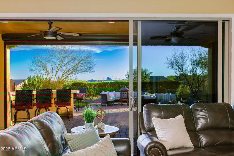 Listing details for 3664 Ridgeview Ter, Wickenburg, AZ 85390 : BEAUTIFULLY DESIGNED 2 bed,2 bath home offering mountain views & an inviting entertainer's backyard w/fully paid solar & private hot tub. Warm custom tones flow throughout the interior, creating a welcoming atmosphere. Great room is anchored by a dramatic 15ft sliding wall of glass, seamlessly connecting indoor living to outdoor enjoyment. Kitchen features built-in appliances, granite countertops & thoughtful storage upgrades. Outdoor space is ideal for hosting or relaxing under desert skies, w/mature landscaping & room to unwind year-round. Well-appointed primary suite & guest bedroom provide comfort, style & functionality. Ideal blend of design, comfort & indoor-outdoor living.