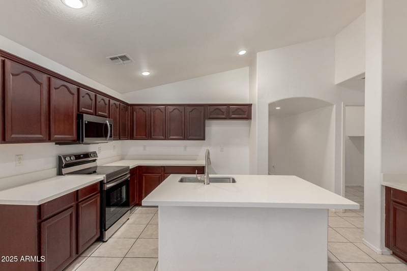 With an open floor plan, vaulted ceilings and a kitchen that boasts all new white quartz counters, bar, and