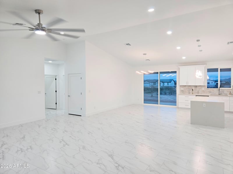 Listing details for 3683 371st Ave, Tonopah, AZ 85354 : As you arrive at this beautiful new built home you'll be welcomed by the elegant forged iron front door with keyless entry option, setting the tone with exceptional security, durability, and craftsmanship. As it opens, the home unfolds into a bright, open great room, where natural light and clean modern lines create an instant sense of space and calm. Stroll over to the gourmet kitchen, beautifully anchored with quartz countertops, modern cabinetry and brand-new LG stainless steel appliances—refrigerator, range, dishwasher, and microwave—designed for both everyday living and effortless entertaining. Just beyond, the bathrooms impress with refined detail, featuring frameless touch backlit and frontlit tempered glass mirrors paired with his-and-hers sinks, creating a spa-like experience that feels both modern and indulgent.