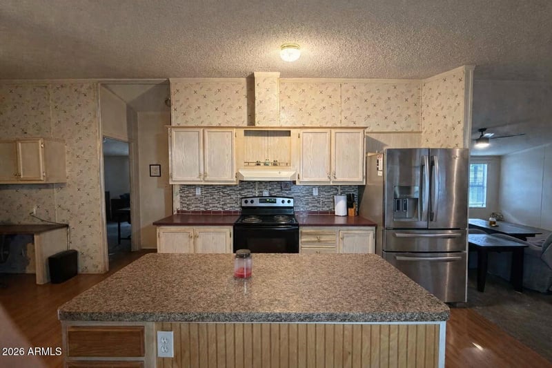 Listing details for 3700 Tomahawk Rd #99, Apache Junction, AZ 85119 : Spacious manufactured home in a gated, professionally managed Apache Junction 55+ community. Located on a large lot with a two-stall carport, attached storage shed, and low-maintenance turf backyard.