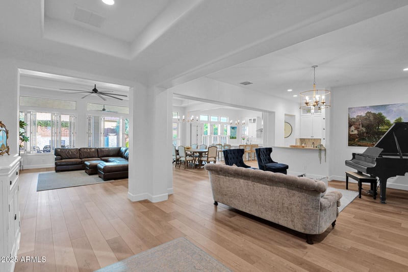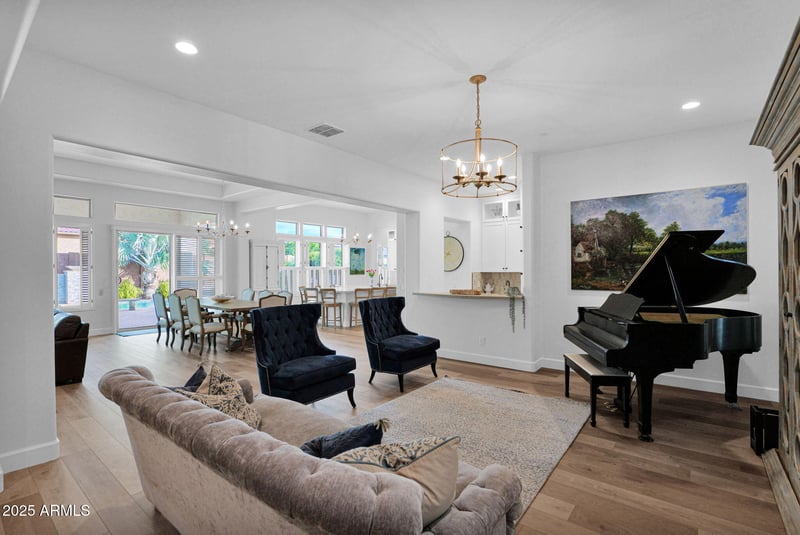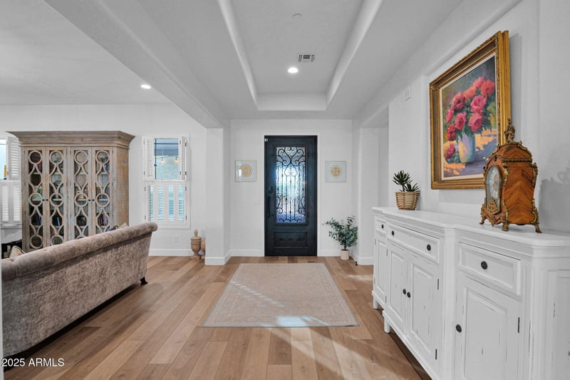 Listing details for 3702 Fountain St, Mesa, AZ 85205 : Welcome to this beautifully designed single-level home ideal for multi-generational living. This stunning residence features 3 bedrooms, 2 versatile flex rooms perfect for a nursery, office, or additional bedrooms, plus a den and 3.5 baths. Situated on a premium 15,000 sq ft corner lot in the desirable gated community of Trovita Norte, adjacent to common area and close to community park! The owners put over $150k of upgrades! (see document section). The gourmet kitchen boasts custom cabinetry, quartz countertops, and top-of-the-line appliances including an induction cooktop, wall oven, and microwave. A large island with a breakfast bar offers ample space for casual dining and entertaining. The spacious great room impresses with elevated flat ceilings and a full wet bar... creating a perfect setting for relaxation or.gatherings. The master suite includes a walk-in closet and a luxurious bath with dual sinks, a custom shower, and a soaking tub. Additionally, the casita features a private entrance, and living area, providing comfortable and independent living space. This exceptional home combines elegance, functionality, and privacy in one remarkable package.