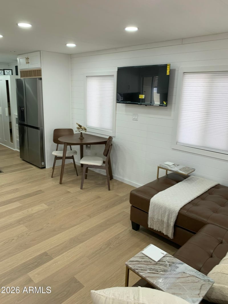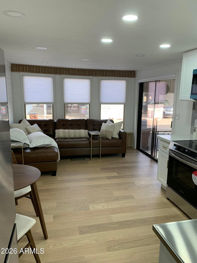 Listing details for 3710 Goldfield Rd #287, Apache Junction, AZ 85119 : Charming 1986 Palm harbor Park Model in a 55+RESORT. Welcome to your desert oasis! This 1 bedroom,1 bath SOUTH FACING HOME is Perfectly situated in a SOUGHT AFTER 55+ Resort Community. ENJOY endless, breathtaking mountain views FROM your EXPANIVE OUTDOOR SPACE, designed for relaxation & entertaining! The large decorative coated carport provides AMPLE parking, doubles as a shaded patio space and is perfect for hosting guests or lounging with outdoor furniture. The fifth wall with a sliding door ensures added privacy, separating the spacious back patio-ideal for enjoying the sunshine or starlit evenings. This WELL MAINTAINED home features a SIZABLE kitchen with ample counter space for cooking & baking, plenty of hallway closets and pantry storage and a ROOMY bathroom which is functional