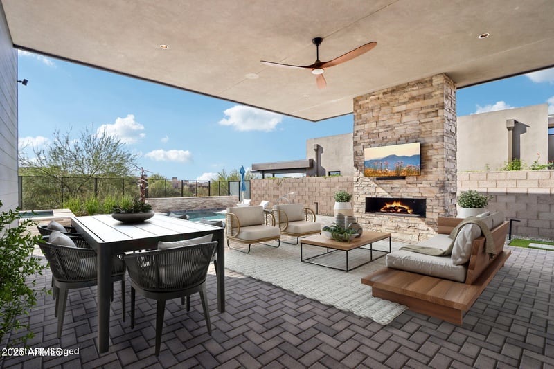 Listing details for 37200 Cave Creek Rd #1037, Scottsdale, AZ 85262 : Effortless single-level living in the heart of Seven at Desert Mountain. This home features three ensuite bedrooms, 3.5 baths, and a tandem 3-car garage. Inside, the design blends warm modern finishes with comfort and functionality. Custom lighting, tailored draperies, and a sleek contemporary kitchen with top-tier appliances and an oversized waterfall island anchor the main living space. Pocketing sliders fill the room with natural light and create seamless indoor-outdoor flow. A second set of sliding doors off the dining room opens directly to the BBQ area, making outdoor dining and entertaining exceptionally easy. The south-facing backyard offers a beautiful pool and spa, a built-in BBQ, and a cozy fireplace, creating a private setting for year-round enjoyment. The primary suite captures a view of Black Mountain through its windows just enough to remind you that you're in Desert Mountain. Home may includes current furniture. A SEVEN Membership, pending Desert Mountain approval. Please refer to the features list for a complete overview of upgrades.
