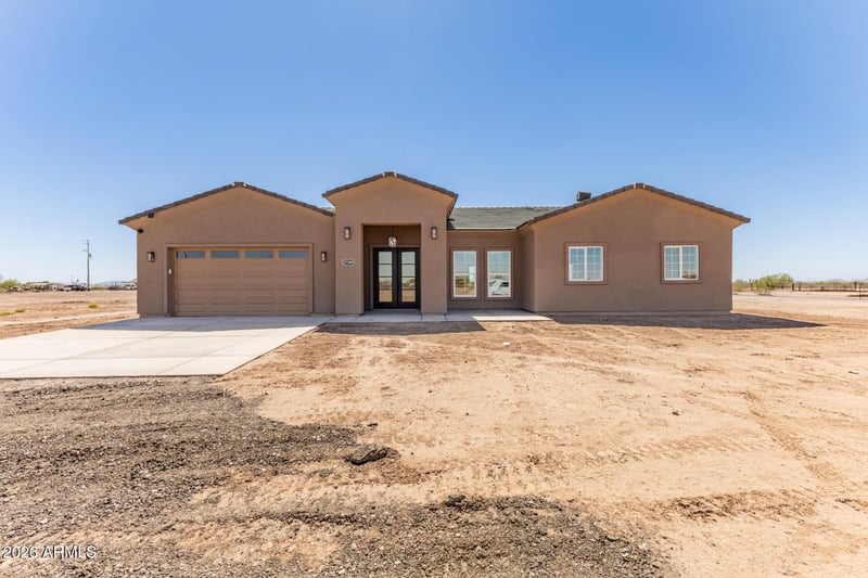 Listing details for 37289 Hilton Ave, Tonopah, AZ 85354 : New construction home on a 1.26-acre lot, move-in ready and designed for the lifestyle buyers are searching for! This 4-bedroom, 3-bath home features a junior suite with private bath, ideal for guests or multi-generational living. Inside offers vaulted ceilings, abundant natural light, neutral tones, recessed and pendant lighting, and tile flooring throughout. The open layout flows into a gourmet kitchen with stainless steel appliances, quartz countertops, tile backsplash, white shaker cabinetry, a walk-in pantry, and a waterfall island with breakfast bar. The spacious primary suite includes dual sinks and a walk-in closet. Enjoy horse property living with room for RVs, toys, and more, plus a covered patio and endless outdoor potential.