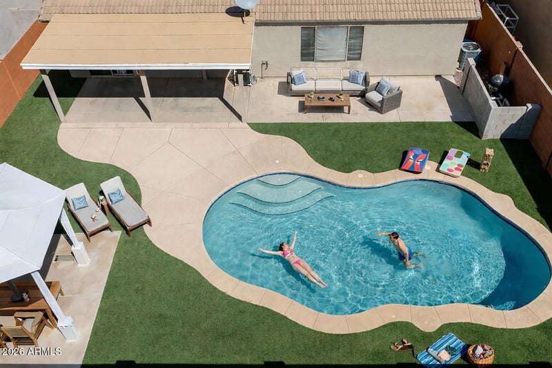 Step outside and you'll find your own private backyard escape. A covered patio and ramada provide shaded comfort, while the sparkling pool sets the stage for relaxing weeke while the sparkling pool sets the stage for relaxing weekends, summer gatherings, and enjoying those iconic Arizona sunsets.