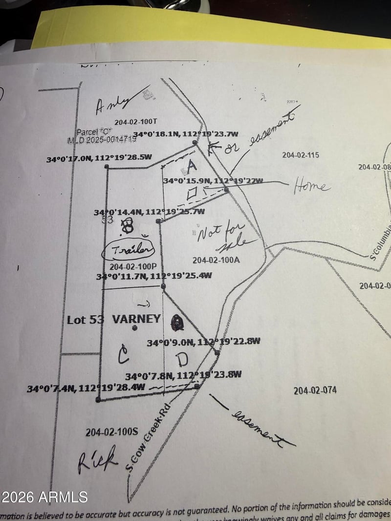 Listing details for 37750 Cow Creek Rd #53 A, Morristown, AZ 85342 : owner will carry a note with $10k down $300. monthly a total of three parcels available including the old ranch home. lowest price in the entire 4,000 acres. One parcel is already sold where the trailer is. 37750 s cow creek rd