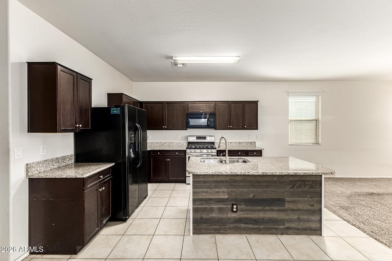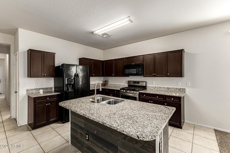 Listing details for 3776 298th Ave, Buckeye, AZ 85396 : Discover the charm of this fantastic single-level home in Tartesso! Starting with stone accent details, 3-car tandem garage, and a low-care landscape. The inviting interior is designed for everyday living and entertaining, the seamlessly flowing open layout is sure to impress! The kitchen boasts built-in appliances w/ gas range, granite counters, espresso shaker cabinetry, a pantry, and an island. Enter the primary bedroom to find an ensuite with dual sinks and a walk-in closet. Laundry room with shelving for your convenience. The large backyard, with a covered patio & mature tree, is an ideal spot to relax or have a fun gathering. Don't miss this opportunity!