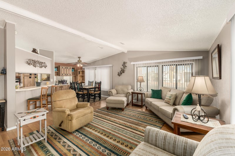 Listing details for 3806 South Dakota Ave, Florence, AZ 85132 : This beautifully maintained, fully furnished home features a clean, open floorplan with 2 bedrooms and 2 bathrooms. The exterior of the home and both bathrooms have been freshly painted. The spacious patio area is ideal for entertaining and includes new privacy screens. The kitchen offers newer vinyl flooring, a breakfast counter, and opens to the dining area with built-in china hutches. Both bedrooms are generously sized and include walk-in closets. The primary bathroom features a newer shower and a linen closet providing ample storage. Additional storage is available in the shed with shelving. RV parking is offsite. The home has boundary fencing. Community amenities include a clubhouse, golf course, and community pool. This well-kept home is a must see!