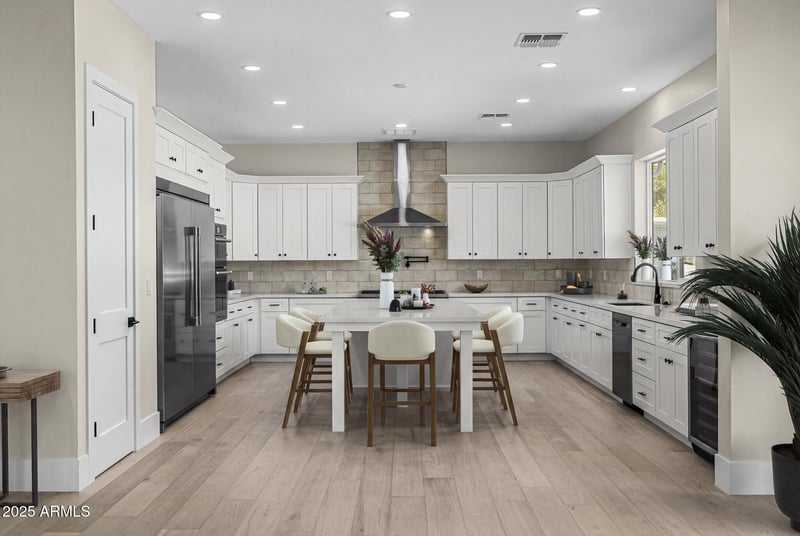 Listing details for 3808 Piccadilly Rd, Phoenix, AZ 85018 : Welcome home! This thoughtfully built Montecito Home in the heart of Arcadia Lite offers 4 bedrooms / 5 full baths, a flexible bonus room (ideal for a playroom, home office, or guest room), AND a separate casita (ideal for guests, a home office, man-cave, or gym). High 10-ft ceilings. A huge chef's kitchen with an oversized island and top of the line appliances. A large, bright great room with a large stackable sliding glass door floods the room with natural light and creates an open, comfortable feel. Built for real life, the home includes smart storage throughout, premium wood flooring, and no wasted hallways. No dead space. The generous master suite includes a large master bedroom; a substantial his-and-her walk-in closet; a large, elegant bathroom complete with his-and-her oversized vanities, a beautiful walk-in shower and a soaking tub framed in its own inviting nook. Set apart from the master suite are 3 well-sized secondary bedrooms each with their own en-suite bathroom. There's also a large flexible bonus room ideal for a home office, playroom, or extra bedroom. A separate casita adds flexibility and is ideal for guests, a home office, man-cave, or gym. Enjoy the added benefit of $200 average monthly utility cots (GAS/ELECTRIC). The home also offers 3 outdoor living spaces and 2 exterior gas fireplaces that complement the home's functional and efficient design. The landscape was very thoughtful adding Ficas trees along the block fencing for added privacy. In a neighborhood framed by stunning Camelback Mtn views, the home enjoys a setting that elevates its overall appeal.