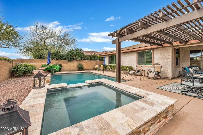 Listing details for 3809 Aracely Dr, New River, AZ 85087 : Located in the desirable Arroyo Norte subdivision, this home offers the perfect blend of comfort and desert tranquility. The incredible entertaining backyard features a sparkling pool, relaxing spa, and built-in BBQ - perfect for hosting family and friends. Inside, enjoy an open floor plan filled with abundant natural light. The home also includes leased solar panels for added energy efficiency and a 3-car tandem garage for a spacious workshop or toy storage. Residents enjoy well-groomed parks, scenic walking trails, and mountains right next door, all just minutes from shopping and dining. Experience peaceful desert living - don't miss out!