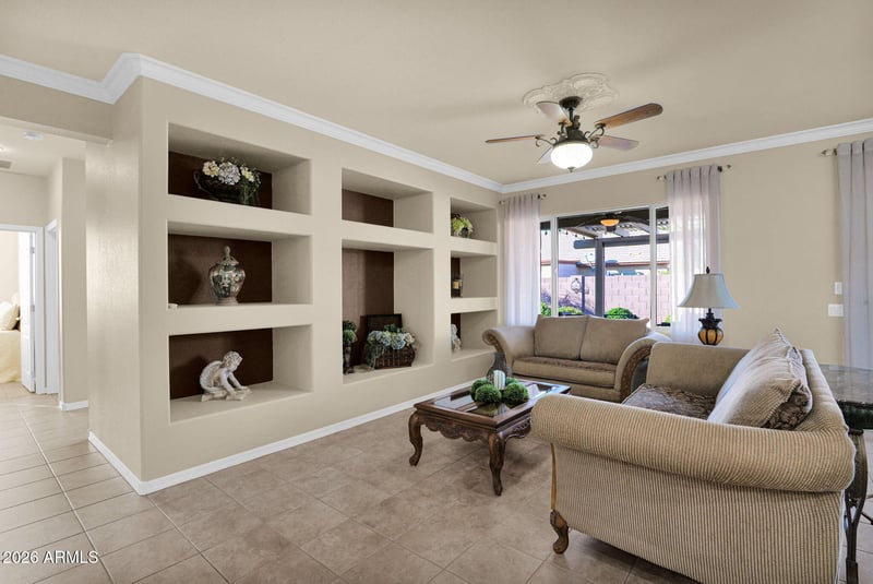 Listing details for 3816 Rolling Green Way, Chandler, AZ 85249 : Welcome to this beautifully maintained 2-bedroom, 2-bath home in the highly desirable Solera at Chandler—a premier 55+ active adult community ideally located near Chandler's dining, shopping, healthcare, and recreation amenities. This thoughtfully designed residence offers tile flooring throughout, creating a clean, cohesive look that's both stylish and easy to maintain. The updated kitchen and bathrooms feature modern finishes that blend function with timeless appeal, while a separate office/den provides flexible space for working from home, hobbies, or quiet retreat. Major upgrades add long-term peace of mind, including a new roof in 2025. The rare three-car garage offers exceptional storage and parking flexibility—an outstanding feature in this community. Outdoors, the home is equally inviting. Well-manicured landscaping frames private outdoor spaces designed for relaxation and entertaining. An outdoor spa creates the perfect setting to unwind after an active day or enjoy Arizona evenings under the stars. Residents of Solera enjoy access to a vibrant lifestyle with a clubhouse, fitness center, walking paths, and social activitiesall while being moments from everything Chandler has to offer. This is an exceptional opportunity to enjoy comfort, convenience, and community in one of the East Valley's most sought-after active adult neighborhoods.