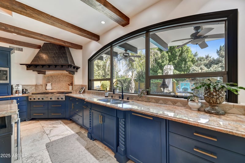 Listing details for 3817 Jokake Dr, Scottsdale, AZ 85251 : This Arcadia home is loaded with character and charm! A large gourmet kitchen with vaulted ceilings and windows, along with a massive center island breakfast bar overlooking the backyard, creates an inviting atmosphere for family and friends. The kitchen features a Thermador Professional 48 Inch Gas Cooktop, Sub-Zero appliances, a Beverage Cooler, a Wine Cooler, Dacor double ovens, a Bosch dishwasher, a spacious island for additional seating, and storage. The spacious layout includes a large great room and formal dining room, providing ample space for entertaining and everyday living. Primary suite with private covered patio. Spare bedrooms are spacious, with one bedroom having an en-suite bathroom. This property sits on a 1/3-acre lot with flood irrigation and lush green lawns.