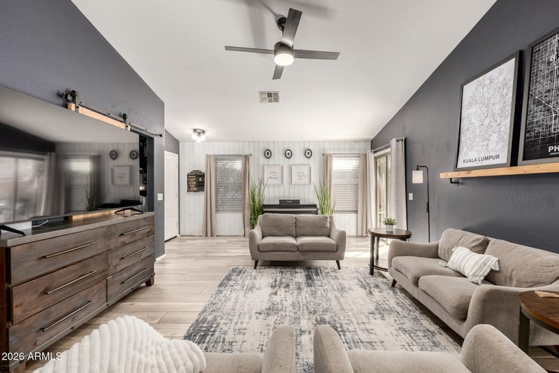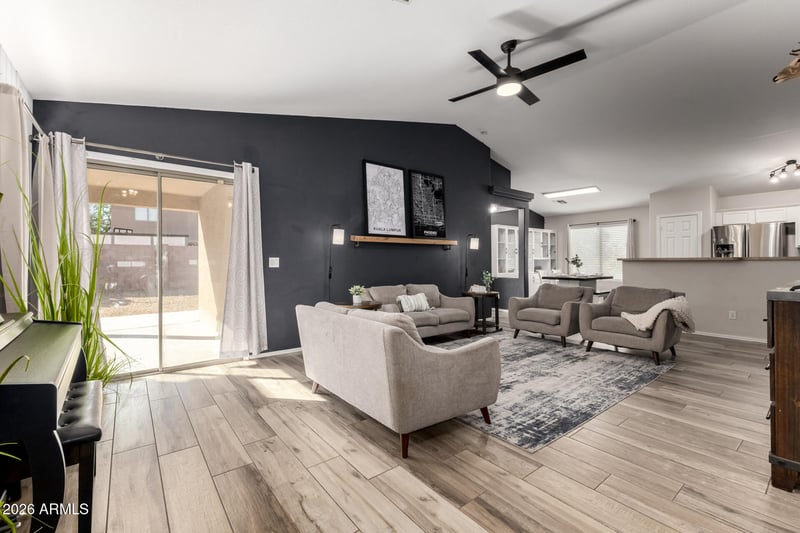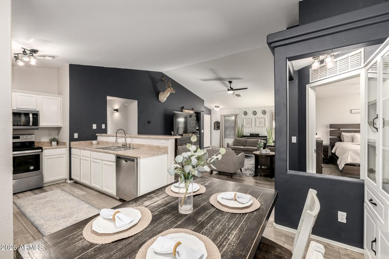 Listing details for 3823 Dancer Ln, San Tan Valley, AZ 85144 : Welcome home to this light, bright, open and airy 4 bedroom, 2 bath home in the heart of San Tan Heights. With vaulted ceilings and a functional split floor plan, this home feels spacious and inviting from the moment you walk in.