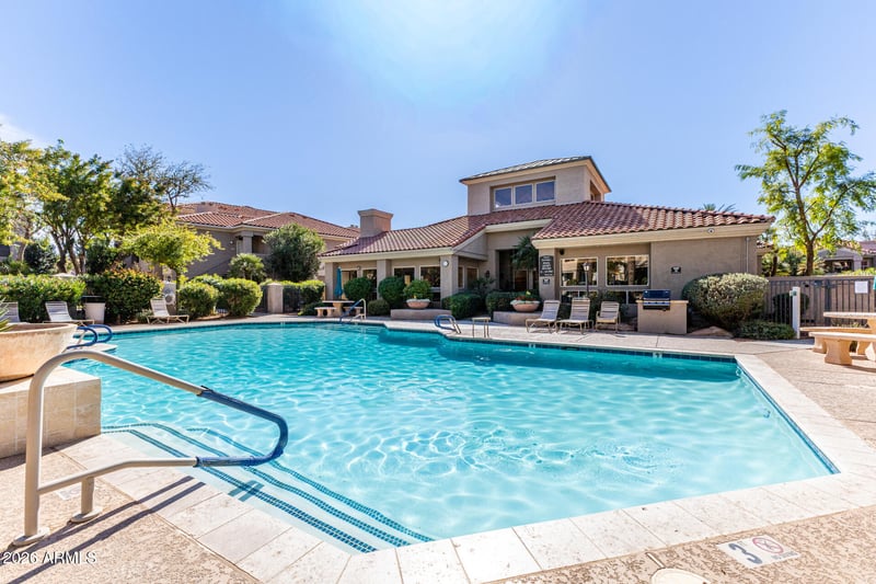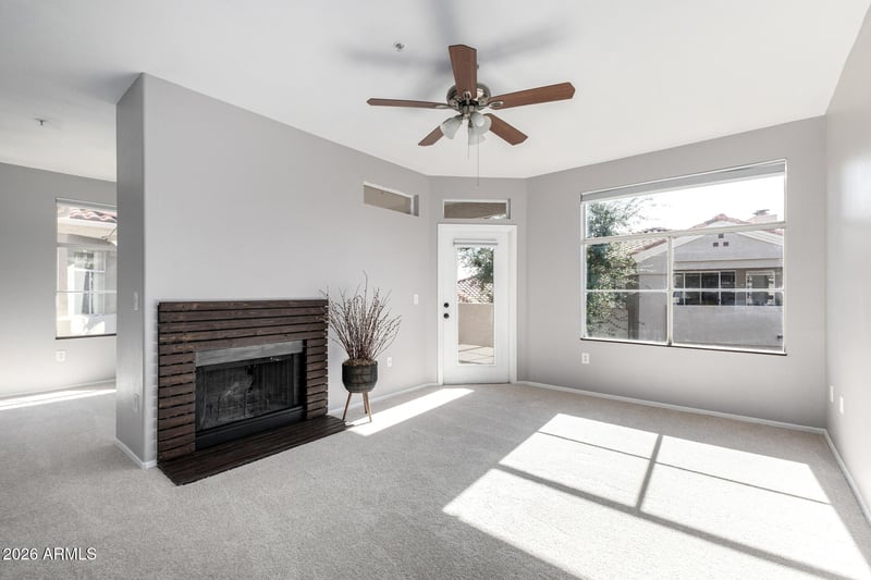 Listing details for 3830 Lakewood Pw #3079, Phoenix, AZ 85048 : Beautiful corner unit in the highly sought-after Portofino community. This desirable split-bedroom floor plan offers two spacious bedrooms, each with a walk-in closet, and two full bathrooms featuring upgraded vanities. The home has been thoughtfully updated with a newer A/C unit(2023), brand-new plank-style flooring and carpet(2026)granite countertops, stainless steel appliances, re-faced cabinetry, and ceiling fans throughout. The bright living room features a cozy fireplace and opens to a private patio—perfect for morning coffee or relaxing evenings. Enjoy a great location overlooking a grassy common area, just steps from one of the community pools and heated spa. Portofino amenities include two pools, three heated spas, two fitness centers, a business center, a theater, clubhouse, and barbecue area. Located in the desirable Lakewood community, residents enjoy two scenic lakes with catch-and-release fishing and paddleboarding, the 2.5-mile "Lakewood Loop" multi-use path, an amazing greenbelt with walking & biking trails, a playground, and nearby South Mountain park for hiking and biking. Conveniently walk to Fry's, Safeway, Trader Joe's, restaurants, and shopping. Don't wait on this one!