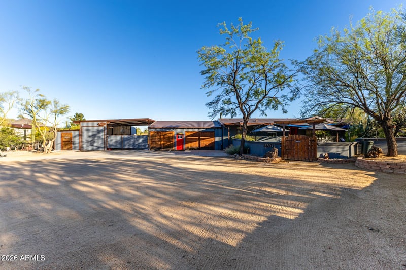 Listing details for 38417 16th St, Phoenix, AZ 85086 : Privacy Galore! Drive through your 20-foot custom gates to a property that offers both tranquility and functionality. Set at the end of a private road, yet only 5 minutes to Carefree Highway, this gem gives you unobstructed mountain views with your early morning coffee or evening cocktail. A beautiful, tiled patio surrounded by mature desert landscaping is perfect for parties and get-togethers. The property's private, well planned layout has 4 garaged parking spaces, 4 additional covered parking spaces, a covered RV parking canopy, and two separate horse setups with auto waters and hay storage. The entire property is fully fenced and has a 2,600-gallon water holding tank. There are multiple, large storage areas and room for a great shop with 220 outlet. Inside there are vaulted ceilings, granite & stainless steel countertop sin the kitchen with new ('25) refrigerator, dishwasher, walk-in pantry, stacked LG washer dryer ('23), and folding cupboard in the laundry room. The primary bath has 2 sinks, separate shower and tub with tile trim. This rare combination of privacy, functionality, and expansive desert beauty makes it an exceptional opportunity for those seeking space, versatility, and Arizona living at its finest.