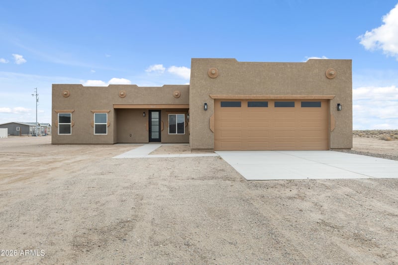 Listing details for 38422 Buckeye Rd, Tonopah, AZ 85354 : Welcome to your dream home! This brand new, one of a kind gorgeous home with a beautiful entry door of 4-bedroom, 2.5 bathroom residence sits on a generous 1.004-acre lot, offering a perfect blend of space, privacy, and comfort. Step inside to find a bright and airy living space, ideal for both relaxation and entertaining. The spacious kitchen is a cook's delight, featuring high end Samsung appliances, a wine cooler, Quartz countertop, tiled backsplash, under the counter microwave and ample counter space. The primary bedroom is a peaceful retreat with an ensuite bathroom, while three additional bedrooms provide plenty of space for family, guests, or a home office.