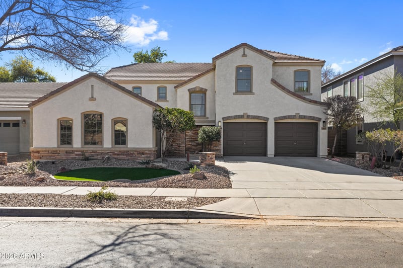Listing details for 3845 Yeager Dr, Gilbert, AZ 85295 : Welcome to this fully updated 5-bedroom, 2.5-bath home in Gilbert's sought-after Cooley Station neighborhood, just minutes from great shops and restaurants. The centerpiece is the stunning kitchen, complemented by a transformed primary bath and updated hallway bath. With all-new flooring, fresh paint inside and out, and beautifully landscaped yards, it's truly move-in ready. The home features a downstairs bedroom perfect for guests or flexible living. Plus, enjoy a three-car garage, brand-new A/C, and a community pool. It's ideal for a growing family looking for space, comfort, and convenience!