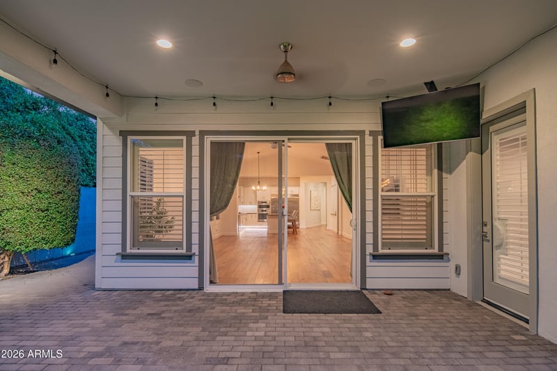 Listing details for 3850 Crittenden Ln, Phoenix, AZ 85018 : Exclusive gated Arcadia residence built in 2017 by Green Street Boutique Communities. This modern farmhouse bungalow sits on a premium cul-de-sac lot and features the community's most desirable floorplan. Chef's kitchen with stainless appliances, oversized custom refrigerator, Caesarstone and granite surfaces, rich wood flooring, and custom louvered shutters. Bedrooms feature new carpet and fresh paint. The luxurious primary suite offers private patio access, walk-in shower, and custom closet built-ins. Ideal split layout with private guest suite plus Jack-and-Jill bedrooms with individual vanities. Low-maintenance backyard with artificial turf, brick pavers, and built-in BBQ. Recent upgrades include water heater, RO system, water softener, and new garage motor. RARE FIND!