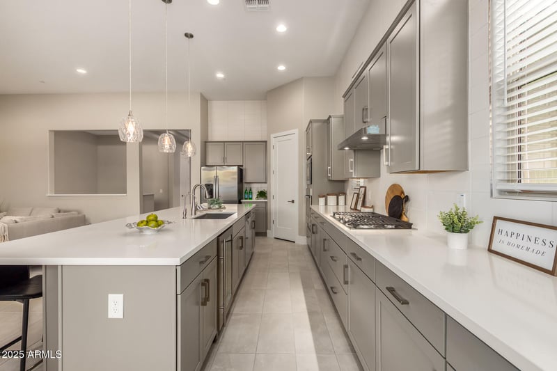 Listing details for 38500 School House Rd #24, Cave Creek, AZ 85331 : Like-new, single level home in the desirable Galloway Ridge community in Cave Creek- barely lived in and beautifully upgraded. This stunning 3- bedroom plus office features an additional flexible workspace, ideal for working from home or hobby area. The kitchen stands out with quartz countertops, a 12 foot island, gas cooktop, wine refrigerator and richly appointed cabinets with soft close doors, pullouts and premium finishes. Soaring high ceilings, a large laundry room and a thoughtfully designed split floorplan enhance both the comfort and functionality. The back yard has been newly finished with pavers, artificial turf, landscaping and a gas stub for bbq along with complete privacy, Enjoy resort style amenities including fitness center, heated pool and spa, pickleball court, dog park and fire pit.Ideally located just minutes from the downtown charm of Cave Creek, with easy access to to biking and walking and right up the street from Black Mountain Trail, a popular hiking trail. A great opportunity to own an upgraded, nearly new home in an exceptional location.