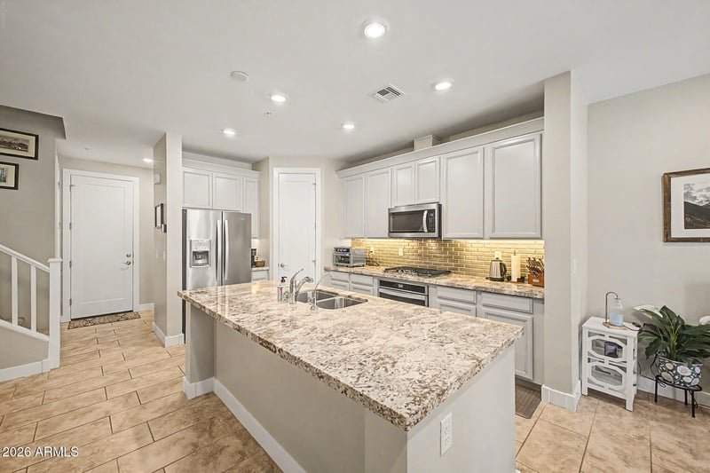 Listing details for 3855 Mcqueen Rd #92, Chandler, AZ 85286 : What if luxury living also meant less maintenance and more time to enjoy it? This beautifully built 2019 townhome in a highly sought-after Chandler gated community offers 3 bedrooms, 2.5 baths, and resort-style amenities including a heated pool. Open concept living and dining flow seamlessly with am oversized sliding glass door creating indoor/outdoor appeal, plus a gourmet kitchen with stainless steel appliances, 36'' gas cooktop, and generous storage. Upstairs loft is perfect for office, gym, or flex space. Energy efficient with tankless gas water heater, HVAC air purification, and whole-home water filtration. Oversized 2.5 car garage, and low maintenance lifestyle--come see it today!