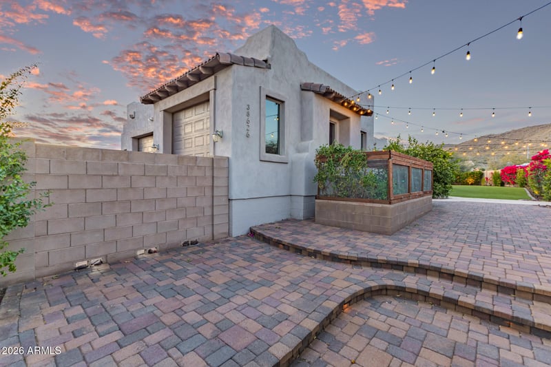 Listing details for 38626 19th Way, Phoenix, AZ 85086 : Desert Hills living at it finest! Away from the traffic, space for your own toys, AND a luxury Southwest Tuscan castle all your own! Situated on over an Acre of beautiful desert, the front grounds include ample seating areas, sport court, maintenance-free turf, citrus trees, and a critter-protected vegetable garden. The west view looks over beautiful natural desert filled with saguaro, sage, and mesquite and expanding blue/purple/pink sunsets. The residence has 4 bedrooms, 2 full bathrooms and a powder room off the main living area. The kitchen has luxurious Carrera marble everywhere - waterfall island, countertops, and walls. Added bonus is the hidden walk-in pantry! This entertainment area flows perfectly into the living room with full custom cast stone entertainment wall and fireplace. The Primary Suite is filled with luxury finished - marble slab flooring, floating black vanities, free-standing tub, dual head shower, and a custom walk in closet. The second bathroom has a floating dual vanity and a private shower/toilet room. The garage is extra tall with extended depth for more toys and storage. This is a wonderful luxury oasis perfectly nestled in that "goldilocks" zone just far enough away from the hustle to be peaceful, but close enough to hit a Costco in 20 minutes. Make this place yours today and live the dream!!