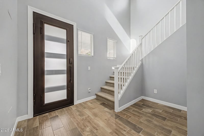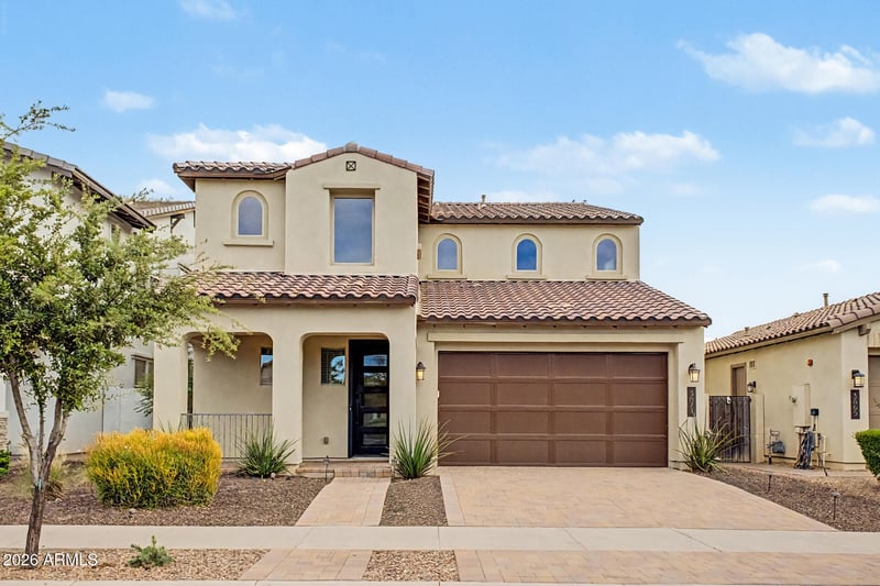 Listing details for 3871 Loma Vista St, Gilbert, AZ 85295 : NEW PRICE!!!!! This stunning two-story residence perfectly blends style, comfort, and functionality. Fantastic curb appeal highlights a paver driveway and walkway, low-maintenance landscaping, and a charming front porch. Inside, enjoy an open, light-filled floor plan featuring wood-look tile flooring, a convenient powder room, and a spacious den, loft, and bonus room with direct backyard access—perfect for entertaining. The chef's kitchen boasts Quartz countertops, white staggered cabinets, a stylish tile backsplash, stainless steel appliances, and a large island with a breakfast bar. The bright primary suite offers a spa-like bath with dual sinks and a generous walk-in closet, while two additional bedrooms share a convenient Jack & Jill bath. Step outside to your private retreat with a