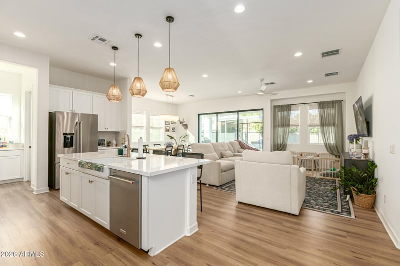 Listing details for 3874 Serpentine Dr, San Tan Valley, AZ 85144 : You don't want to miss this stunning 2-story gem with a 3-car garage with EV charger! The 3rd car which is separate is set up as a gym also has AC! Inside, gorgeous wood-look floors flow through a spacious great room designed for both everyday living and entertaining. The sleek kitchen is a showstopper, featuring stainless steel appliances with double wall ovens, quartz countertops, abundant white cabinetry, a center island with breakfast bar, and a walk-in pantry. The downstairs primary retreat offers a private bath with dual sinks and a generous walk-in closet. Also downstairs is a bedroom and full bathroom great for guests. Upstairs the versatile loft is ideal for a media center, while an additional cozy nook works perfectly as a home office or creative studio with built in desk Six rooms all together and 4.5 baths one being a half bath for visitors so 4 full bathrooms. Out back, unwind under the covered patio, enjoy the low-maintenance artificial turf, timeless travertine, and cool off in the fenced-in amazing pool and no worries if you don't need or want the fence it is removable also. POOL and SPA! The beautiful custom pergola has electric and a TV great for entertaining! This luxurious home truly has it all. Located in the highly sought after Toll Brothers community called The Preserves at San Tan with so many wonderful and unique amenities! Come experience it for yourself.