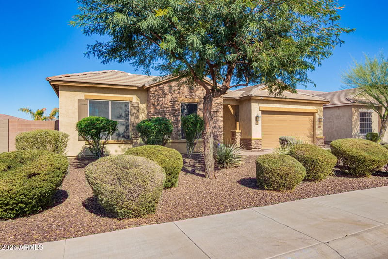 Listing details for 3888 Chestnut Ln, Gilbert, AZ 85298 : Welcome to Chestnut Lane! This thoughtfully designed home is located within the highly desirable Bridges North community featuring scenic lakes, walking paths, neighborhood parks plus so much more! Offering 5 bedrooms and 2 bathrooms, the home features a split floor plan and a spacious, light-filled great room enhanced by two sliding glass doors for seamless indoor-outdoor living. The kitchen showcases white shaker cabinetry, premium KitchenAid appliances, granite counters plus a dedicated flex-space ideal for a coffee bar, entertaining or work station. A charming courtyard entry adds curb appeal, while the expansive fifth bedroom featuring French doors offers flexible use as a home office, playroom, or bonus living area. The primary suite is a true retreat, featuring a custom walk-in closet with built-in cabinetry, shelving, and integrated laundry pull-outs for effortless organization. The spa-inspired bathroom includes a large walk-in shower, soaking tub, dual vanities, and an additional storage closet, blending luxury with everyday functionality. The resort-style backyard is designed for year-round enjoyment with a sparkling swimming pool and waterfall feature, an outdoor kitchen with built-in BBQ, Green Egg, mini-frig, high powered misting system, plus an extended covered patio with automated roll-down shades. Low-maintenance artificial turf completes this inviting outdoor space, ideal for relaxing or entertaining. Conveniently located near top-rated schools, shopping, dining, and Gilbert Regional Park, this home offers exceptional comfort, versatility, and lifestyle in one of Gilbert's most sought-after communities. Designed for everyday living and effortless entertaining, this home truly has it all!