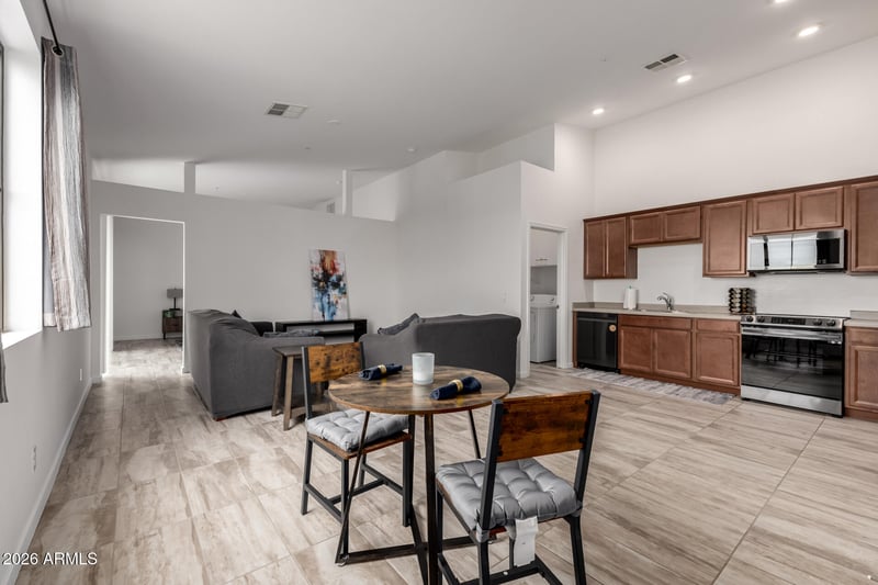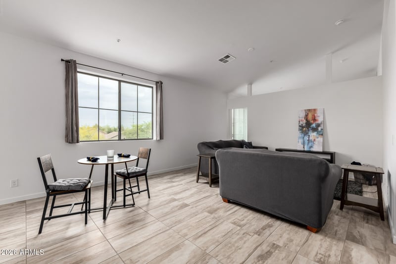 Listing details for 3900 Baseline Rd #167, Phoenix, AZ 85042 : Discover this delightful two-story townhouse at the Shades of South Mountain Condominiums! Fall in love with the sizable living spaces filled with natural light, showcasing wood-look flooring, soaring vaulted ceilings that make it look even more spacious, and neutral colors that complement any decor style. The impeccable kitchen is complete with plenty of cabinetry adorned with crown molding, ample counter space, and built-in appliances for a seamless cooking experience. Ideal for those looking for easy maintenance and comfortable living. This gem boasts a serene bedroom with an ensuite and a cozy loft, perfect for a home office or reading nook. The community pool access adds to the appeal--great as a primary home, getaway, or investment with comfort and convenience!