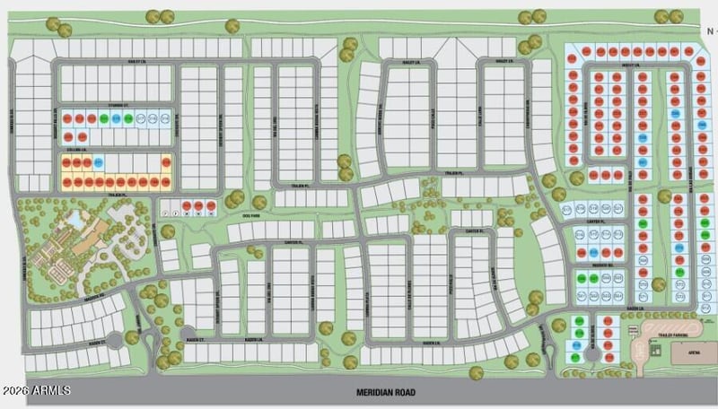 Listing details for 39005 Maddox Rd, Queen Creek, AZ 85140 : What's Special: Flat Lot | Close to Trails | East Facing Patio | Flex Room | Covered Patio | Gourmet Kitchen | Popular Plan. New Construction - May Completion! Built by America's Most Trusted Home Builder. come to the Sunrise at 39005 N Maddox Road, set within the vibrant 55+ active‑lifestyle community of Ovation at Meridian! This single‑story plan offers 2,161 square feet with two bedrooms, two and a half bathrooms, and a two‑car garage. As the largest design in the Inspiration Series, it features an open kitchen and great room, a flexible bonus room, and a guest bedroom with its own ensuite bath. The secluded primary suite feels like a retreat, complete with a spa‑inspired bath, dual sinks, and a spacious walk‑in closet. MLS#6979214 Situated against a backdrop of picturesque mountain ranges just outside of Phoenix, Ovation at Meridian is a 55+ resort-lifestyle community. Here, you'll find stunning natural desert surroundings and a welcoming atmosphere where neighbors quickly become friends! There's plenty to enjoy without ever leaving home, from the private Ovation Clubhouse to resort amenities that elevate everyday life. Socialize at the clubhouse. Get your game on at pickleball and tennis courts. Stay active at the fitness center. Take a refreshing dive in the shimmering pool. Residents can also connect with nature at the butterfly garden that is part of Ovation. They are able to catch a glimpse of vibrant orange and black wings against the blue sky at Ovations National Wildlife Federation-Certified Butterfly Garden! Native milkweed and flowers create a sanctuary for the iconic monarch butterfly. Additional Highlights Include: 12-foot slider, upgraded tile shower, boardwalk cabinets and tile in main areas. Photos are for representative purposes only.