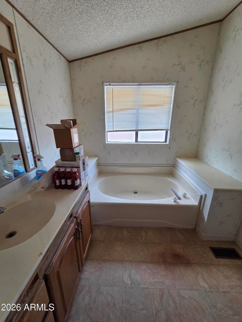 Listing details for 3901 Pinnacle Peak Rd #268, Phoenix, AZ 85050 : Paradise Peak West is a vibrant 55+ community located at the heart of the Arizona lifestyle. BACK YARD CAN BE ENCLOSED W PPW APPROVAL. This property is sold As-Is, will need flooring including base flooring and interior updates. FEATURES: Raised-panel cabinets, recent exterior paint, a New HVAC system (approximately two years old), and a $9,000 side patio conversion to a spacious Arizona room. The Arizona room features skylights, windows, and an integrated second storage area, fully equipped with electric, and a separate rear patio area designed for a BBQ and television setup. This unit backs up to a wash/common area. Closest comparables are 140k plus without the Arizona Room Addition and Newer HVAC and Roof Shingles.