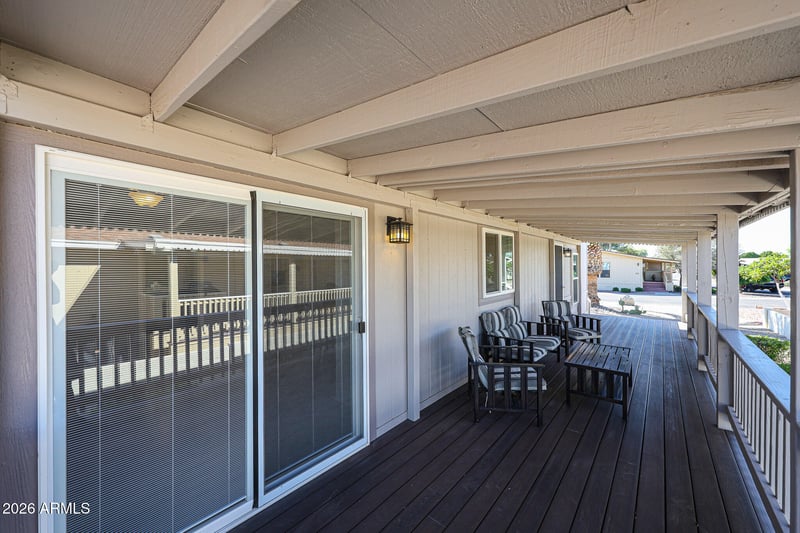 Listing details for 3901 Pinnacle Peak Rd #275, Phoenix, AZ 85050 : Total tear down to wood studs in 2018! That means 2018 windows, lighting, cabinets, baths, kitchen, flooring. Quartz countertops, raised panel doors, 2 sinks in master bath, and 2 sinks in hall bath. Tiled showers. There's a custom stained glass window in master bath of pinnacle peak. 34'' wide master doorway just in case! Sliding door has built in shade. Low traffic street in subdivision. SS appliances, pendant and recessed lighting in kitchen. Slow close cabinets. Deep drawers in kitchen island. Tile backsplash. Ramp at back door. Covered parking. This 55+ subdivision has a manned guard gate and 4 pickleball courts. A 9 hole exec golf course & clubhouse with heated pool is available. Peace of mind here. One owner. Monthly land lease of $965 includes water/trash/sewer.