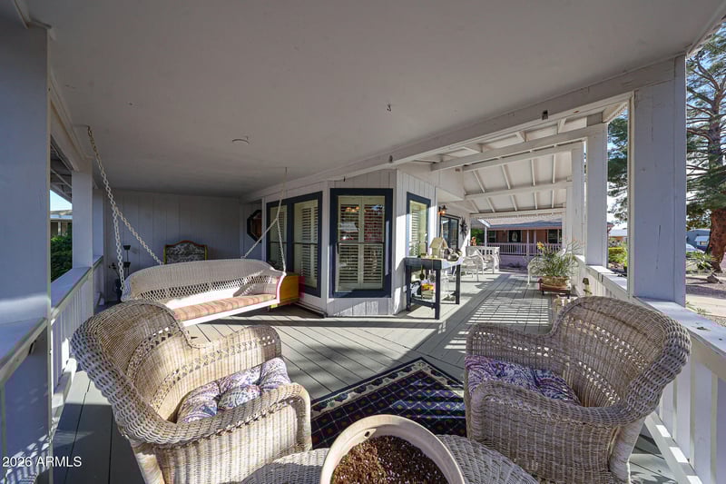 Listing details for 3901 Pinnacle Peak Rd #344, Phoenix, AZ 85050 : So much character on this large wrap around front deck! Curb appeal +. GARAGE Plus large workshop attached to home. Rare find. HVAC 2025. You must see this cozy home with 2 bedrooms plus an enclosed Arizona room plus the 9ft wide front covered deck. Plenty of room. Murphy bed in 2nd bedroom. Hard floors throughout. W/D stay with home and extra fridge in garage stays. Well maintained. This 55+ community is also a gem! Located in the Desert Ridge area with a 9 hole executive golf course and heated pool The 24/7 manned guard gate provides peace of mind! Monthly land lease $970/month. The clubhouse has a remodeled pool, hot tub, game room and lots of social activities. Be active or just stay home in this quiet gated community. No rentals allowed. 30lb dog limit. Great Location