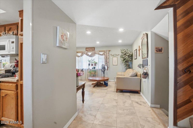 The home features a practical floor plan with comfortable living spaces, abundant natural light, and a layout designed for everyday livability. The kitchen anchors the home with ample cabinetry and workspace, flowing seamlessly into the main living area--perfect for entertaining or relaxed evenings in.