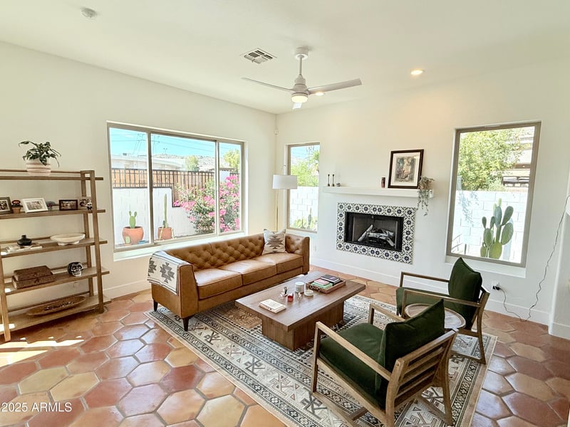 Listing details for 3929 Carter Dr, Phoenix, AZ 85042 : Experience elevated living in this exquisitely remodeled residence located in the prestigious gated community of Pines at the Raven. Thoughtfully curated with designer finishes throughout, the chef's kitchen is a true statement, showcasing custom cabinetry, striking hexagon Saltillo tile flooring, a bespoke backsplash, quartz countertops, premium Frigidaire appliances, and all-new fixtures and lighting. The serene primary suite offers a spa-inspired en-suite bath featuring a walk-in tiled shower with a glass enclosure and an elegant dual-sink vanity. Retreat to your private backyard oasis, where a sparkling pool and lush, manicured landscaping create the perfect setting for relaxation or upscale entertaining. Significant recent upgrades include a new roof, HVAC system, windows, sliding doors, and irrigation systemdelivering modern efficiency and peace of mind. Residents enjoy resort-style community amenities including a gated entry, pool, spa, and front yard landscape maintenance, blending luxury, convenience, and lock-and-leave living. Mortgage savings may be available for buyers of this listing.