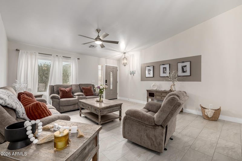 Listing details for 3929 Dead Wood Dr, Casa Grande, AZ 85122 : Recently remodeled 2,908 sq ft home with 4 bedrooms, 2 baths, office, and a sparkling pool! Open-concept layout features a custom Stone Creek kitchen with quartz counters, new cabinets, upgraded appliances, porcelain tile, and Anderson windows and shades. Tastefully updated bathrooms, central vac, owned Kinetico water softener, new insulated garage door, and updated fixtures throughout. Private backyard oasis with new landscaping, covered patio, outdoor island, fire pit, no neighbors behind, and breathtaking Arizona sunsets. Easy I-10 access—approx. 30 minutes to Chandler and Phoenix. Move-in ready and a must-see!