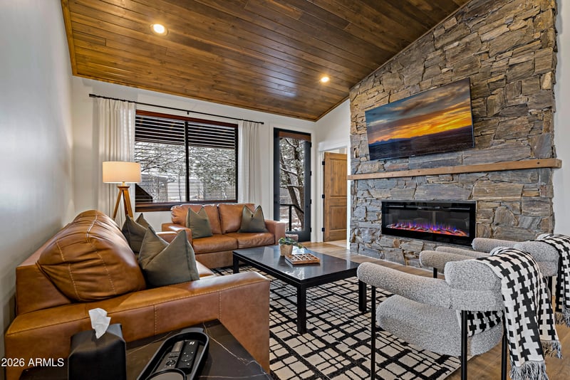 Listing details for 3941 Cooley St, Show Low, AZ 85901 : Welcome to your peaceful mountain escape in Show Low -- where fresh pine air, cool temperatures, and relaxing surroundings create the perfect getaway or full-time retreat. This charming 2-bedroom, 2-bath single-level home blends modern comfort with cozy mountain living. Inside, you'll find warm finishes, an inviting stone fireplace perfect for relaxing evenings, and a fully equipped kitchen ready for entertaining or weekend stays. ✨ Being sold fully furnished, this home is truly move-in or rental ready. The comfortable living room couch even features a queen pull-out bed, offering additional sleeping space for guests and maximizing flexibility for hosting family and friends. Step outside to your private deck, ideal for morning coffee among the pines, evening grilling, or unwinding under the stars. Whether you're escaping the summer heat or searching for a peaceful year-round home, this retreat delivers comfort and convenience.