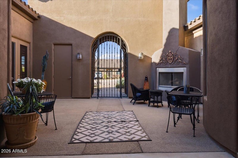 Listing details for 39410 7th St, Phoenix, AZ 85086 : Exquisite estate on a fully fenced acre. No HOA and zoned for Horses. Breathtaking views and refined luxury throughout. Soaring ceilings and expansive living spaces lead into a beautifully appointed kitchen ideal for everyday living and entertaining. Resort-style backyard features a heated pool with in-floor cleaning system and Marbella pavers, plus an expansive travertine patio and outdoor fireplace--perfect for elevated outdoor living. A private entry courtyard with wood-burning fireplace creates a grand, inviting arrival. Dedicated home theater with Sonos sound and a thoughtfully designed ensuite ideal for multigenerational living. Impeccably maintained with exceptional pride of ownership. Oversized garage with RV gate and 220 hookup. Room to add a detached shop (zoning approval).