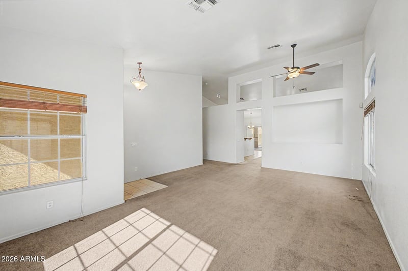 The backyard has a fenced pool, covered patio and grassy area perfect for Arizona summers, weekend gatherings or simply to unwind - No neighbors behind you - No Vacant Land behind you