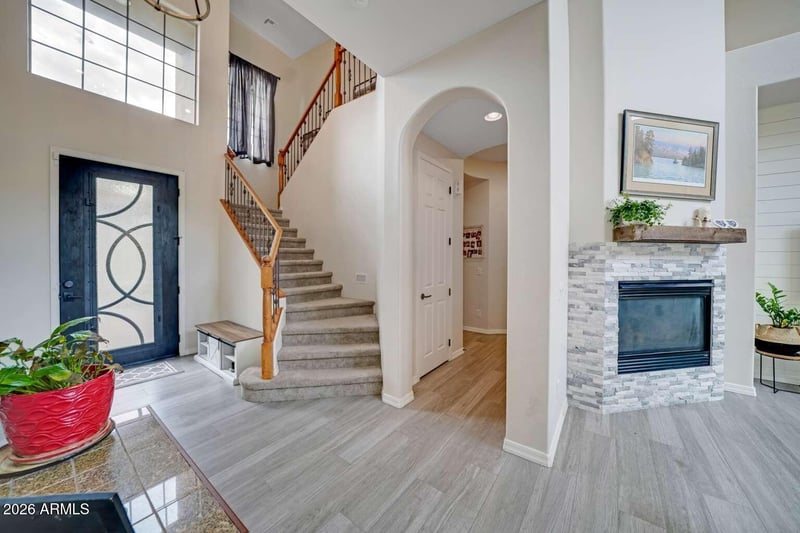 Listing details for 3978 Hashknife Rd, Phoenix, AZ 85050 : Welcome to 3978 E Hashknife Rd in Phoenix, AZ. This spacious home offers 4 bedrooms and 3.5 bathrooms, along with a dedicated office and a large extra space, providing flexibility for work, play, and entertaining. Two of the bedrooms feature oversized layouts with ensuite bathrooms, offering comfort and privacy for you or your guests. As you enter the home, you're welcomed by soaring vaulted ceilings in the entry and living room that create a bright and open feel. The main living area has been thoughtfully updated and features an expanded kitchen island complete with a built-in beverage refrigerator and ice maker. During the renovation, a large walk-in pantry was also added, providing exceptional storage and convenience. Just off the entry is a private office, perfect for working from home. The main level also includes a half bath, entry from the garage with a washer and dryer area, and a spacious bedroom featuring dual sinks and a walk-in closet. Upstairs you'll find another large bedroom with an ensuite bathroom, two additional bedrooms connected by a full bathroom, and a generous extra room that can serve as a media room, playroom, or additional living space. One of the standout features of this home is the exceptionally large lot, nearly double the size of many others in the area. The resort-style backyard is designed for both relaxation and entertaining and includes a covered patio with ceiling fans, a built-in BBQ, a pool and spa, recently installed turf, updated landscaping, and a large open entertaining area. The property also includes both a two-car garage and a separate one-car garage, along with a front patio seating area.