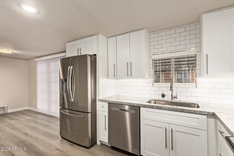 Listing details for 400 Baseline Rd #312, Tempe, AZ 85283 : Enjoy owning this RENOVATED 4-bedroom home in Tempe, AZ! From the moment you arrive, you'll notice the convenient carport parking and a cozy front patio that's ideal for enjoying your morning coffee. Freshly painted interior features wood-look flooring, ceiling fans, window blinds, bountiful natural light, and neutral tone that creates a warm, welcoming atmosphere. Designed with entertaining in mind, this gem offers both a large living room and a great room for flexible living. Upgraded kitchen comes with subway tile backsplash, crisp white cabinets, granite counters, SS appliances, recessed lighting, and a breakfast bar. Each bedroom provides a comfortable retreat, perfect for relaxation. PLUS! A washer and dryer are included. Make it yours before it's gone!