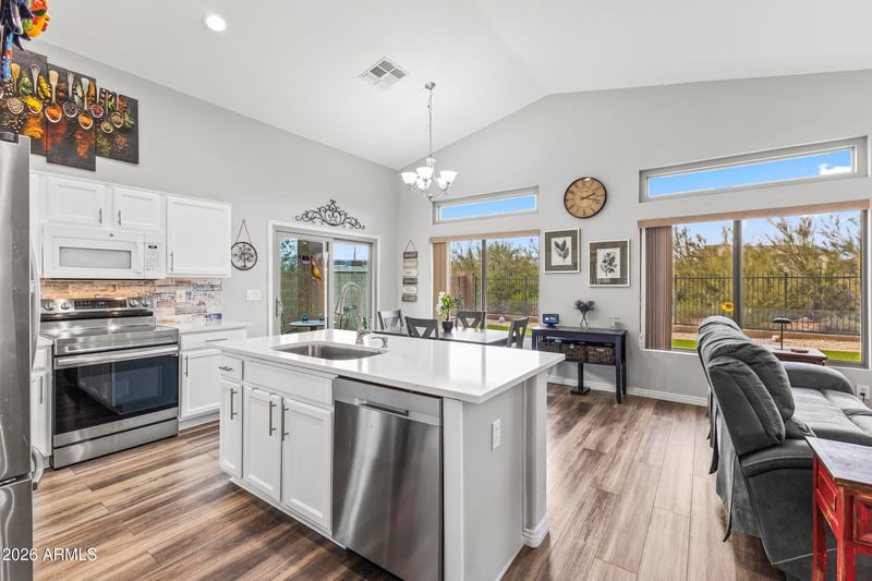 Listing details for 40040 Courage Way, Anthem, AZ 85086 : Welcome to this stunning updated 3-bedroom, 2-bathroom home situated on a private lot backed up to a natural desert space, offering peace, privacy, and comfort. Inside discover a fully updated kitchen featuring elegant quartz countertops, new stainless steel appliances, and modern finishes that make both everyday living and entertaining a delight. The home showcases, luxury vinyl flooring throughout, fresh interior paint, a new sliding glass door in addition to new west facing windows. Outside, enjoy a low-maintenance backyard complete with synthetic turf—perfect for relaxing, pets, or play—while taking in the added privacy of your serene setting. Other improvements include HVAC, Roof and more!