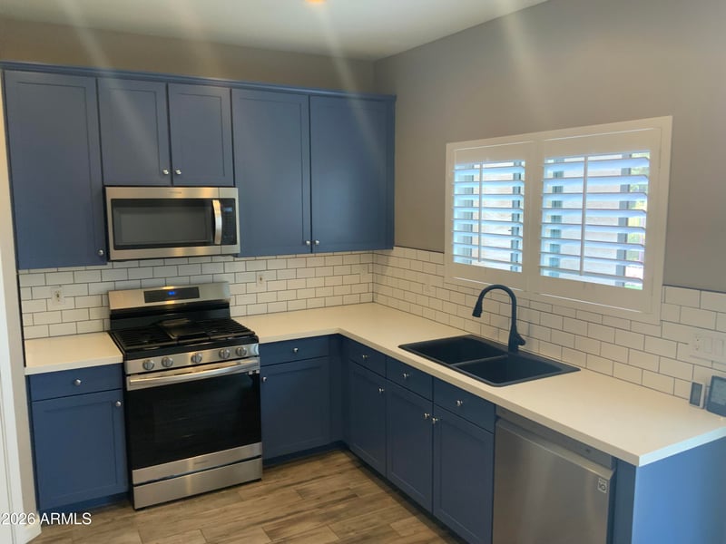 Listing details for 40136 Catherine Dr, Maricopa, AZ 85138 : Come enjoy your premium lot, backs and sides to greenbelt. This very upgraded home is move in ready. You will love the tile floors through the home with only carpet in the three bedrooms. Also has a tiled den/office off the family room. The kitchen is ready for you with painted cabinets, custom backsplash, gas range and newer stainless appliances that all stay including fridge. The bathrooms have all been remodeled with custom tile,mirrors,showers and vanities. Enjoy your low maintenance artificial turf backyard with beautiful greenbelt views that go all along the side of the home. Plenty of parking with oversized driveway. Community pool, basketball, picnic , and more.