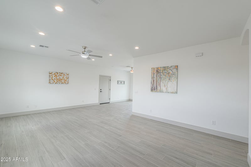 Listing details for 40179 Robles Rd, Maricopa, AZ 85138 : GORGEOUS & EXPANSIVE 2025 built Santa Fe Style Custom Home! This stunning 3 bedroom, 2 full bathroom beauty sits on 6.5 level acres surrounded by custom homes & can be subdivided for future development! Enjoy a full-length covered patio with breathtaking mountain views & plenty of room for horses or toys! Inside, you'll love the upgrades throughout—wood plank tile in all the right places, designer paint inside & out, upgraded baseboards, modern fixtures& a luxurious tile shower! The entertainer's kitchen boasts White cabinetry, Quartz countertops, SS appliances, dining nook & opens perfectly to the living space! Palatial master retreat offers double closets & spa-like ensuite with a dual sink vanity, walk-in tile shower & separate shower/tub combo! The 2-car garage comes finished with epoxy flooring for that perfect touch! Outside features include fully piped fencing with a custom entry gate, paver path walkways, NO HOA, shared well & room to build your dream lifestyle! A MUST SEE!