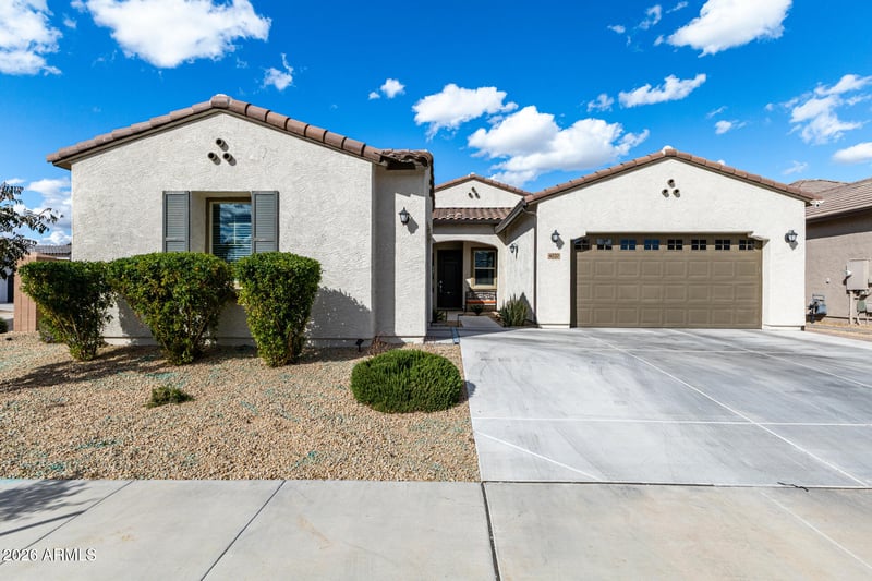 Listing details for 4020 Piedmont Rd, Laveen, AZ 85339 : Separate guest quarters with own entrance, garage, kitchen with gas range, fridge, microwave, stacked washer/dryer. Luxuriously light & bright upgraded home. 3-car garage, 24x6in plank flooring, 10ft ceilings, 8ft doors and wired for surround sound. The owner is a professional chef and designed kitchen with 44in cabinets, 6 burner gas Monogram range, microwave w/air fryer, wine fridge, R/O purified water, crown molding, full tile backsplash, sleek quartz countertops, stainless steel appliances, pantry and expansive island with breakfast bar, perfect for entertaining. Main suite hosts a walk-in closet with mirrored barn door and organizers. Bathroom with an oversized dual-sink vanity. Wired for EV charging station. Tankless water heater. Backyard has large paved gazebo and covered patio within a home! Your guests won't have to worry about privacy and space, featuring a bright great room including a kitchen with ample shaker cabinets, tile backsplash, and a granite peninsula. The backyard hosts a covered patio, well-laid pavers, a grass area, perfect for games, and a ramada, perfect for gatherings. What's not to love? Make this gem yours now!
