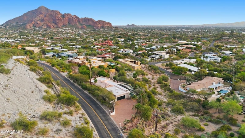 The lot includes an existing structure and sits in an elevated position that captures expansive views of the city lights, Camelback Mountain, and Tempe, which truly defines Paradise Valley living at its best. The setting offers a rare combination of privacy, elevation, and proximity, making it an ideal site for a future custom residence.