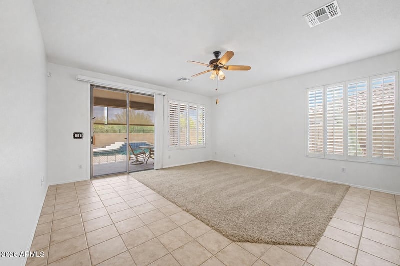 Listing details for 40214 Faith Ln, Anthem, AZ 85086 : You'll LOVE this beautiful home with POOL in Anthem Parkside! A low-care landscape & a 2-car garage w/cabinets are just the beginning. Featuring 3 Bedrooms + DEN, plantation shutters & tons of natural light throughout. Formal living room with sliding doors to the back! The eat-in kitchen boasts SS appliances, ample wood cabinetry, recessed lighting, and a pass-through window w/breakfast bar. Versatile den for an office! The large double-door main bedroom has an ensuite with dual sinks, separate tub/shower, & a walk-in closet. Laundry room with cabinetry. Designed for year-round enjoyment, the spacious backyard oasis is sure to impress with a covered patio, mature trees, and a sparkling pool complete the picture and no neighbors behind! Incredible community amenities to enjoy as well!