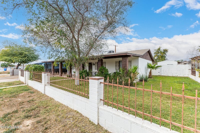 Listing details for 4032 Nancy Ln, Phoenix, AZ 85041 : Charming home close to central Phoenix that boasts proximity to Sky Harbor Airport, 202 Interstate and I-10 and I-17. No HOA, a new a/c unit recently installed last year, as well as a large storage/shed work space in the backyard and extended paved driveway with a large carport.
